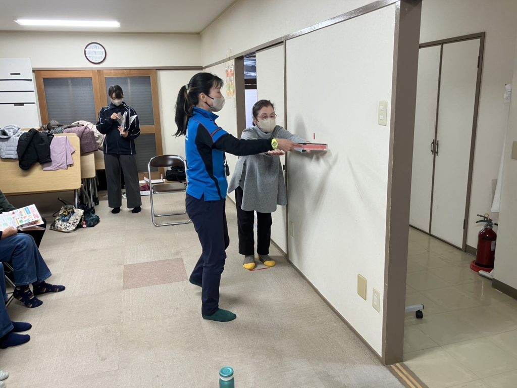 内容は、①通報訓練➡︎119番通報に電話のかけ方②消火訓練➡︎
