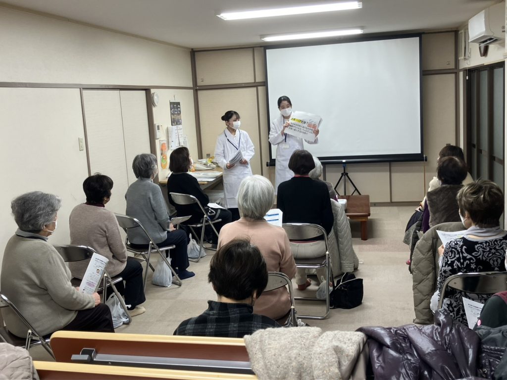 南港病院の実習生の方から健康に良い食事の献立の紹介がありました。