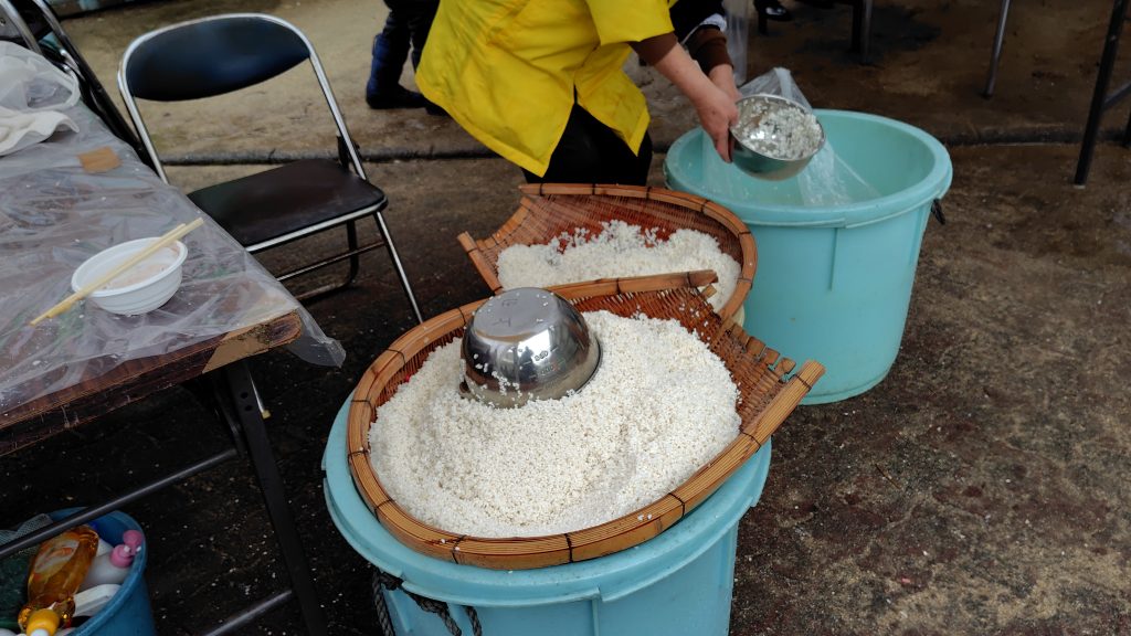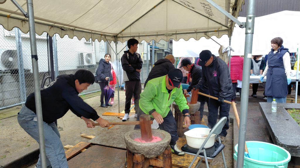 町会の高齢化に伴いつき手、臼とり共担い手がいないためたくさんの応援をいただいて開催しました。