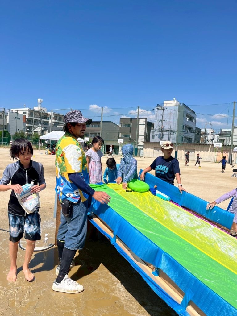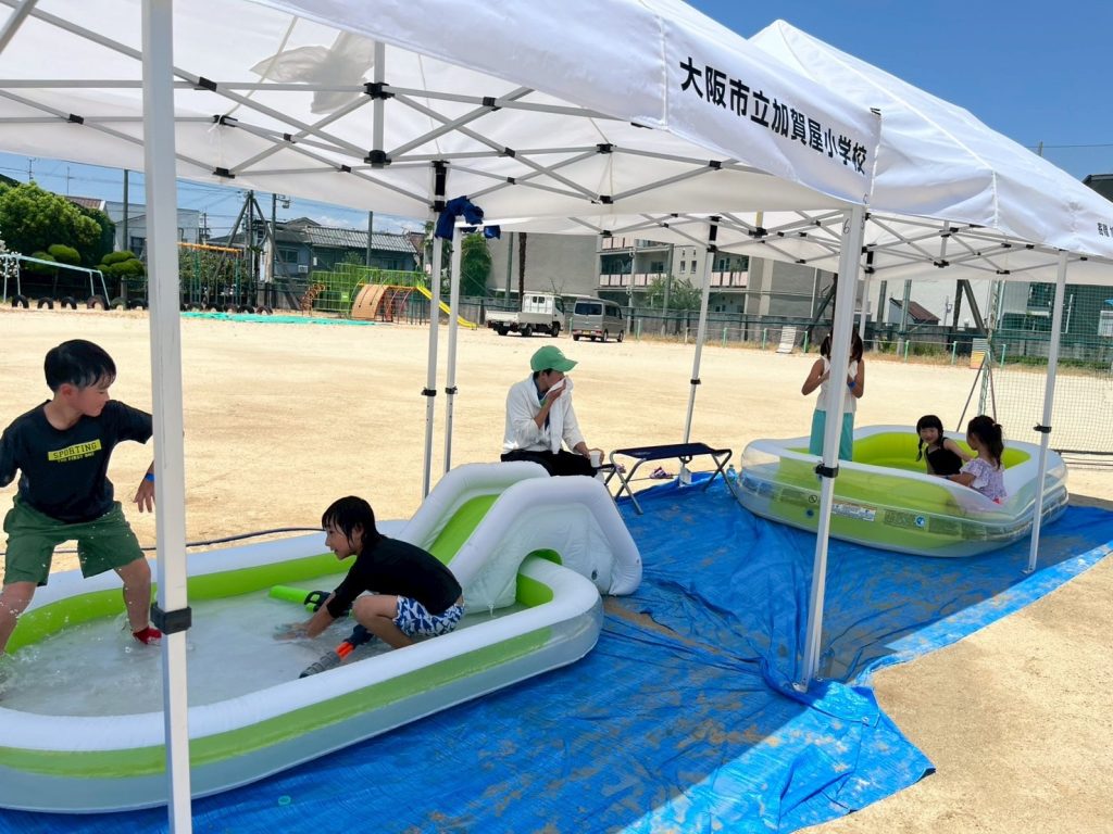 2025年8月3日(日曜日)に加賀屋小学校校庭にて水遊び大会を実施しました。