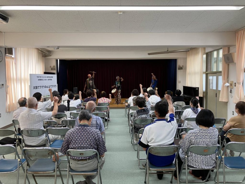 ジャララんべというアフリカの太鼓を叩いて、みんなで手拍子、